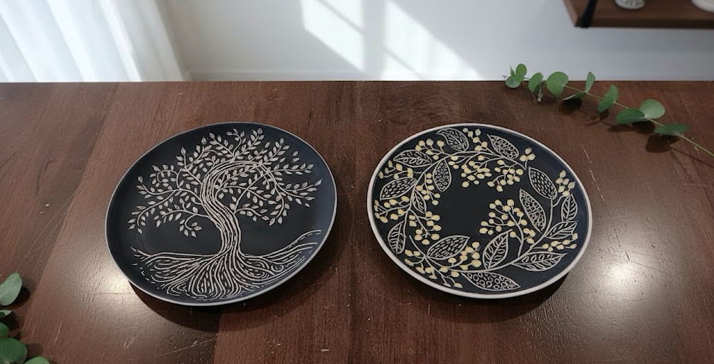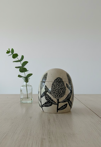 This collection marries my passion for Australia’s unique flora with the dramatic, ancient art of sgraffito (Italian for ‘to scratch’). It is a celebration of texture and detail.