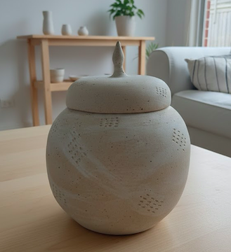 Perfect as a standalone sculptural piece, a unique urn, or a vessel for cherished keepsakes, this piece brings a peaceful, artful presence to any space.