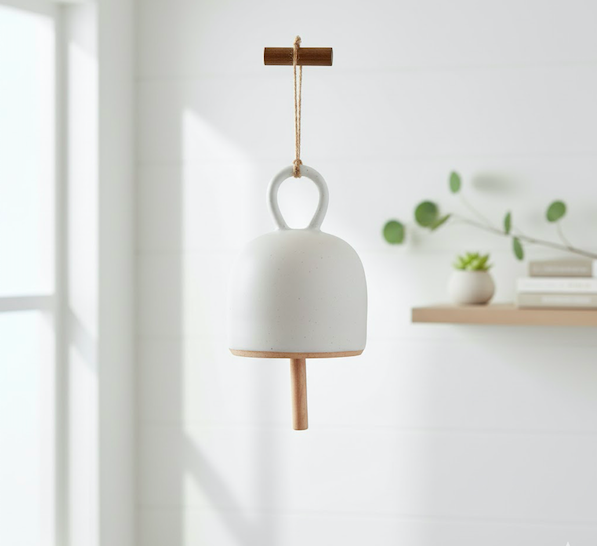 This beautifully handcrafted ceramic bell is designed to bring a touch of peaceful, minimalist charm to any space.