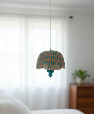 Honey and teal bell with beeds