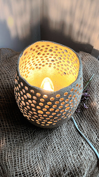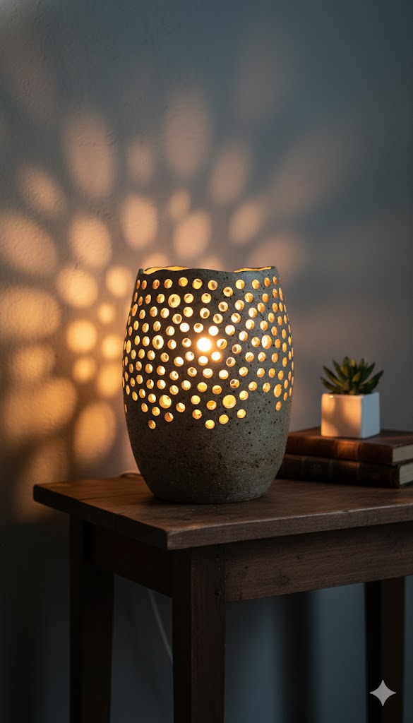 When illuminated, the lamp casts a beautiful glow, fitted with a warm light globe that amplifies the earth tones of the clay. This creates a cozy, restful atmosphere perfect for a bedside table, reading nook, or living room accent.