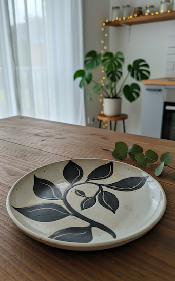 This plate is a beautiful testament to the artistry of sgraffito, combining an elegant finish with a dynamic, hand-carved design. It’s a statement piece that will elevate any serving occasion.
