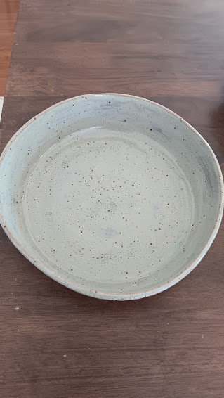 This piece is regarded as a second. There has been some subtile warping in the final firing. ( see photo) It is still functional, and oven, dishwasher and microwave safe.